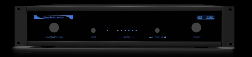 SA255 společnosti Stealth Acoustics je integrovaný výkonový monofonní zesilovač s dolní propustí navržený jako zdroj napájení s nízkým zkreslením pro neviditelné panely subwooferů Stealth Acoustics namontované ve stěně nebo ve stropě nebo pro jiné reproduktory bez vlastního napájení. Je určený pro kompletní basové aplikace domácího audia nebo domácího kina, SA255 lze stohovat s dalšími komponenty nebo namontovat do standardního 19" (483 mm) rozvaděče, který vyžaduje pouze 2 RU nebo 89 mm panelového prostoru. K dispozici jsou odnímatelné 19" rozvaděčové držáky. SA255 poskytuje plných 250W při zatížení 8 Ω a 350 W při zatížení 4 Ω. Proměnná dolní propust, 18 dB na oktávu, umožňuje neomezené nastavení dělící frekvence od 50 Hz do 100 Hz.